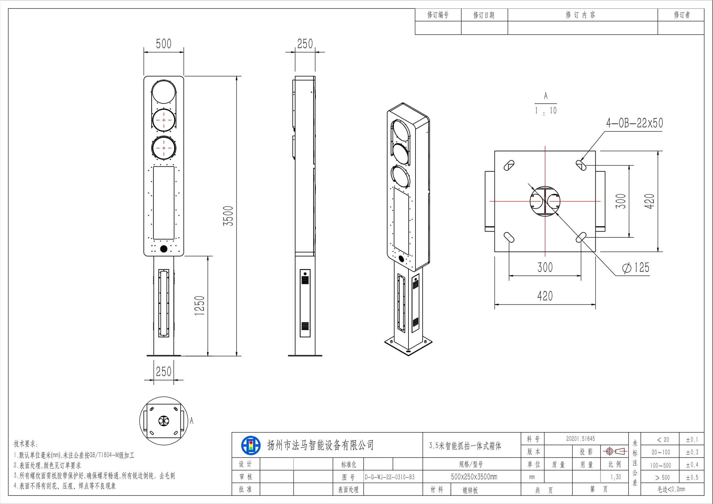 | Dimensões gerais | C × L × A: 500 × 250 × 3500 mm |